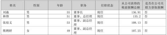 据时间财经报说念,昔日一年泸州老窖多位职务级别在副总司理以上高管的答谢出现下滑,其中中枢高管薪酬下跌昭着。2024年,泸州老窖董事长刘淼从公司赢得的税前答谢总和为136.91万元,较2023年166.2万元下跌29.29万元,跌幅达17.6%;董事、总司理林锋亦如斯,年薪较2023年下跌29.1万元至135.2万元。
