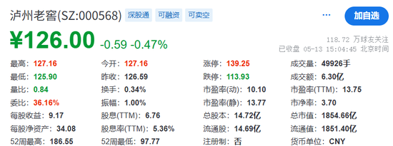 2021年泸州老窖市值巅峰时曾超4000亿元,而今已跌幅过半。纵脱2025年5月13日,泸州老窖的总市值为1854.66亿。
