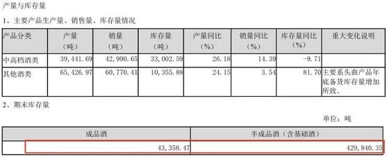 2020年-2023年, 泸州老窖的制品酒库存量分裂为3.59万吨、5.28万吨、5.46万吨、4.22万吨、4.34万吨,半制品酒(含基础酒)库存量分裂为27.83万吨、38.57万吨、40.26万吨、43万吨、42.98万吨。2024年天然半制品酒库存同比下跌了0.02万吨,但制品酒库存量飞腾了0.12万吨。