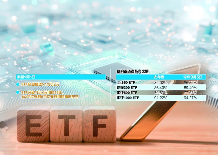 从妥当市集的压舱石,到住户钞票增长的器用箱,再到领有影响股价走向的言语权——当年两年来,ETF申明鹊起,如今畛域结巴5万亿元,已然成为影响A股市集走向的紧要力量。