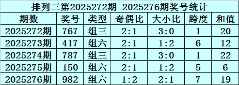 组选类型判断:最近5期陈列三开出4次组六号码,本期要点眷注组六号码出现。