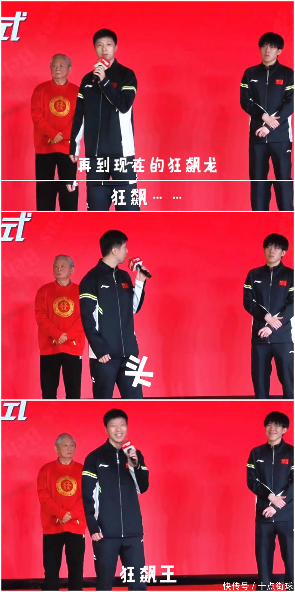 马龙在本场年会上创造了爆笑全场的“狂飙头”梗!在马龙个东谈主发言范例,底本想说从“狂飙龙”(马龙专款)、“狂飙王”(王楚钦专款)和“狂飙飒”(孙颖莎专款),成果马龙真的面向王楚钦,把“狂飙王”说成了“狂飙头”,一时候不仅引得全场爆笑,就连王楚钦本东谈主和孙颖莎齐忍不住大笑!这成为了本场年会最大的亮点;“狂飙头”一词的灵感,既源于红双喜经典胶皮“狂飙”系列,阔别有“狂飙龙”、“狂飙王”和“狂飙飒”,不仅奥密聚集了三东谈主的昵称,更暗指3东谈主在赛场上的凌厉球风,这一幽默互动顿然点火了现场抱怨,也展现了马龙行为宿将的机智与亲和力